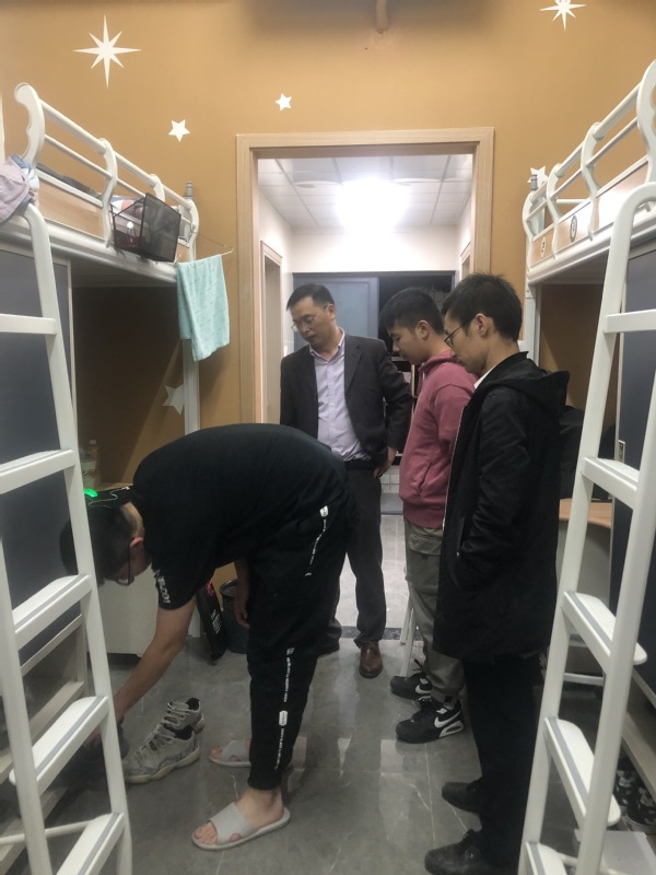 走访过程中,院领导和辅导员对学生寝室安全、卫生、基础设施等方面逐一进行了检查,对卫生情况良好的寝室提出表扬,叮嘱同学们宿舍是大家共同生活的地方,要多通风、勤打扫,时刻提升安全意识,寝室内杜绝使用违规电器,走廊上不摆放生活垃圾,保持寝室卫生整洁和走廊的通畅,要养成良好的学习和生活习惯。老师们与学生亲切交谈,气氛温馨而愉快。