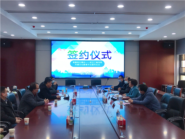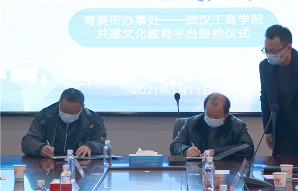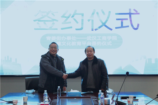 新闻中心讯(记者 李洋洋)1月11日上午10点,必赢优惠y272net图书馆与洪山区人民政府青菱街办事处共建青菱街社区文化教育平台签约仪式,在洪山区青菱街203会议室举行。青菱街党工委书记何线、区高校办副主任钱文胜、青菱街道办副主任李大庆、青菱街公共服务办主任杨健槐,必赢优惠y272net党委书记刘生元、校长助理左宗文、图书馆馆长万化喜、图书馆副馆长黎智等参加了仪式。