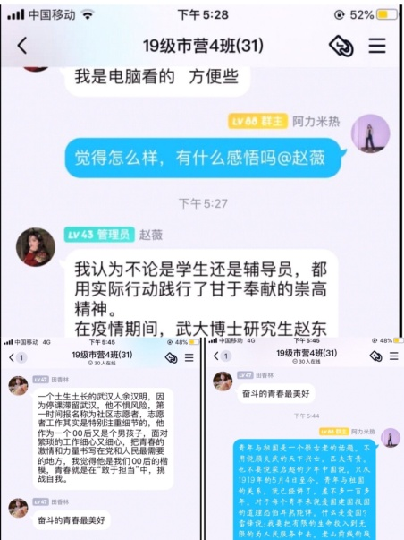 图为19级市营4班团支部成员在支部群内讨论