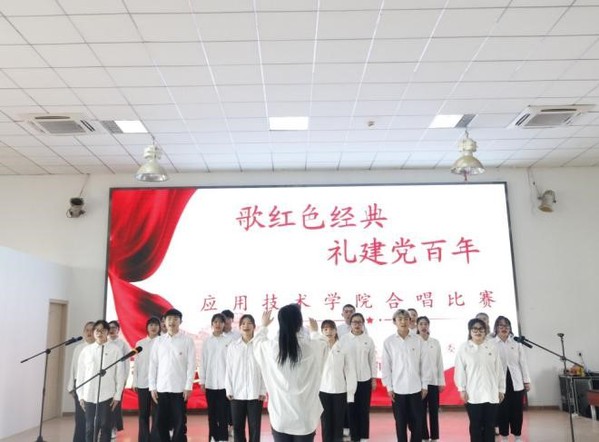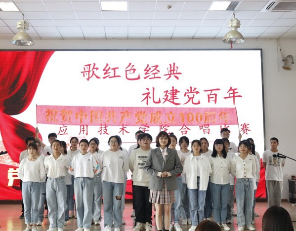 今年是中国共产党成立100周年,为传承红色文化,学习红色精神,激发广大学生的爱党爱国热情、凝聚人心、鼓舞斗志。应用技术学院分团委于2021年4月19日12时30分在体育馆403室举行了“歌红色经典,礼建党百年”合唱比赛。应用技术学院辅导员田真老师、柳娜老师,陆薇薇老师、田艳老师、周璇老师、陈艺丹老师,以及分团委书记梁爽老师出席了本次活动并担任评委。