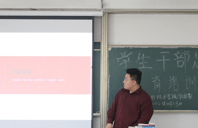为进一步加强学生干部思想建设,端正学生干部工作作风,增强服务意识树立良好形象,应用技术学院分团委于4月23日12点30分在综合楼204教室召开学生干部思想教育培训大会。应用技术学院分团委学生会全体成员参与本次大会,会议由秘书处副部长刘允哲主持。