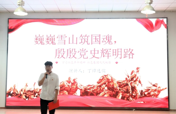 其后学院党总支副书记海鹏老师上台致辞,他说:本次活动无论是支部还是个人都非常积极,党史学习教育将持续进行,希望大家一直保持积极向上的精神风貌,从百年党史中汲取营养,努力学习悟透百年党史,将理论实践,形成蓬勃向上的发展风气。