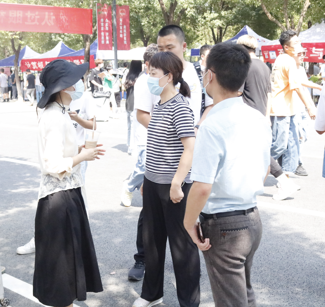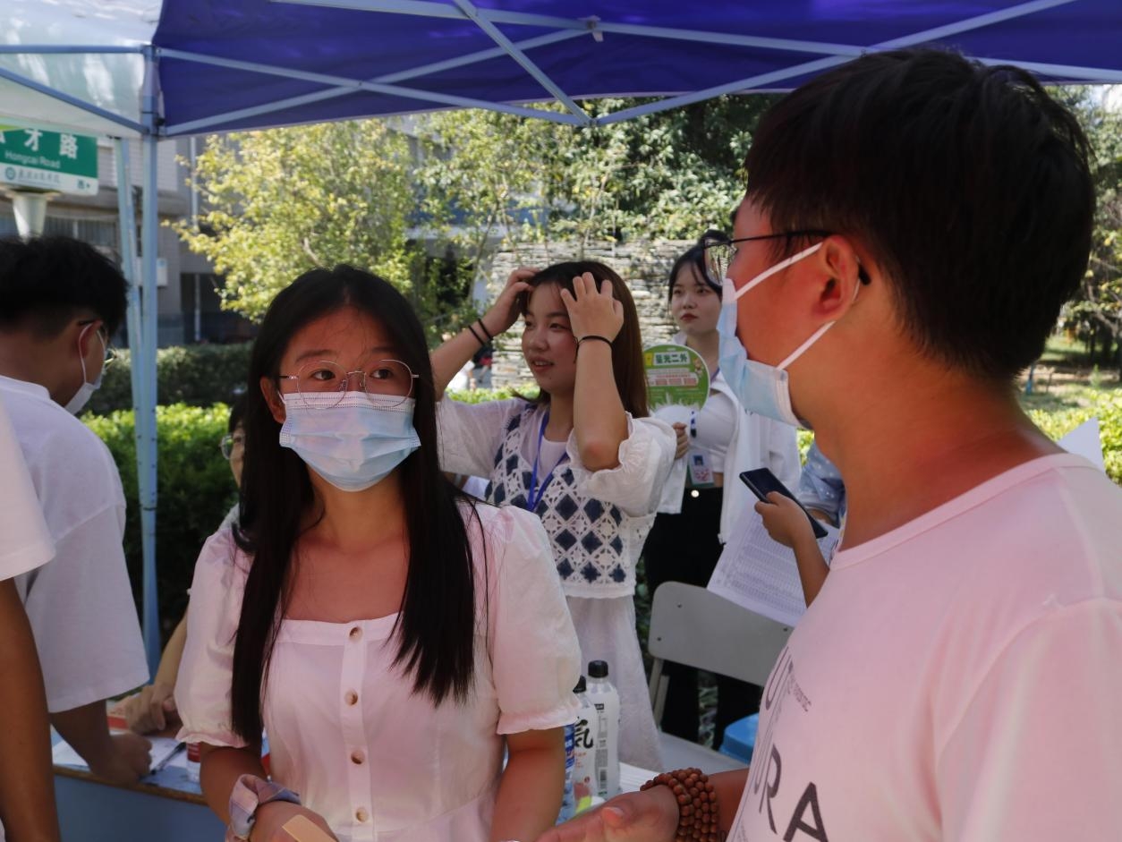 志愿者在此次迎新中起着至关重要的作用。他们无私奉献,用行动、用汗水诠释了志愿者的“志愿精神”。“新生会在前几天联系到我们,确定到校的大致时间,我们会根据到校时间与他们进行联系,帮他们搬运行李,指引他们去新生报到处报道,去体育馆缴纳学费,解答学生和家长提出的问题。我有做过志愿者工作,有经验,做起来得心应手。我认为做志愿者工作是一种享受的过程,享受帮助同学的快乐。虽然天气炎热,但是几声谢谢,我也感觉清风徐徐。”志愿者王宇昊在接受记者团采访时如是说道。