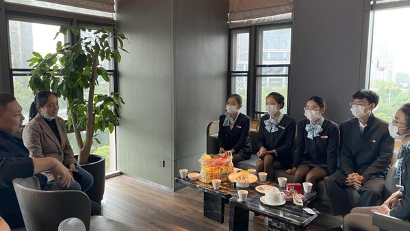 2021年10月13日下午,学院党总支副书记海鹏老师带领2022届毕业生辅导员一行抵达湖北纳杰人力资源有限公司,与在这里实习的学生进行了座谈,仔细听取同学们的实习收获和体会、工作与生活中的问题与困惑。