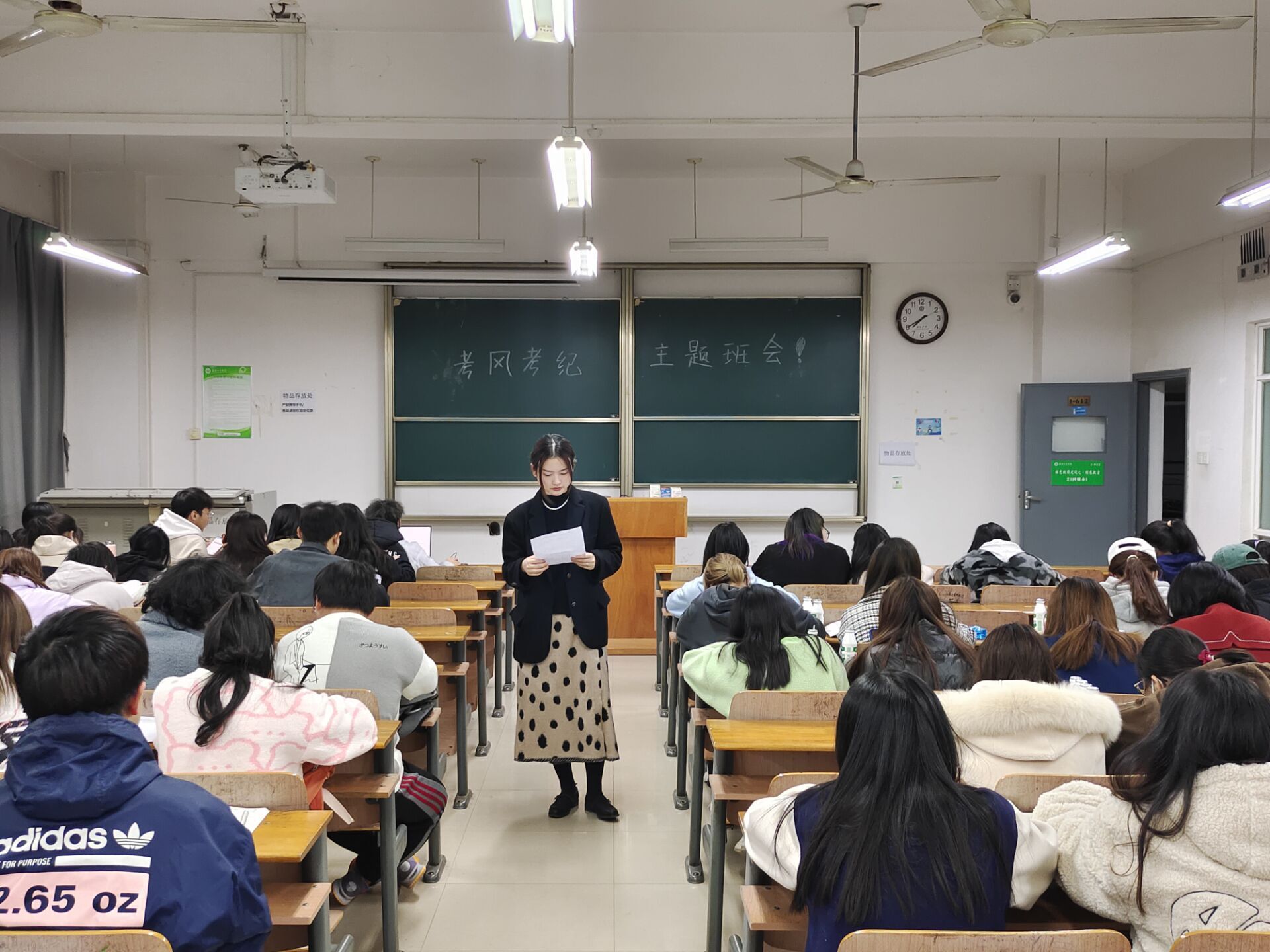 据悉,自2021年11月15日到2021年11月22日期间,全院辅导员对61个行政班共计1956名在校学生召开了共计14场班会,做到了考风考纪宣传教育工作的全覆盖。班会内容包含由辅导员带领学生学习《考试须知》《学生考试违纪处理依据概要》以及学生手册上关于处分的相关条款等,班会现场,全体学生还签订了《必赢优惠y272net学生诚信考试承诺书》。