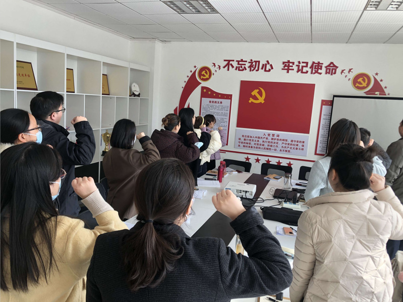 随后,教工党支部书记熊晓亮带领全体党员面向党旗重温入党誓词。