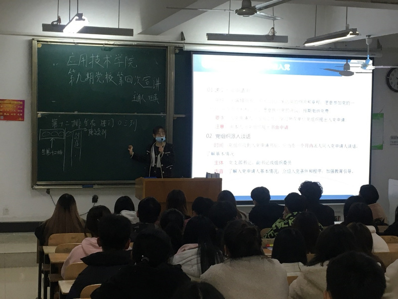 第六次党课由学生党支部书记田真老师讲授。她为同学们带来的主题是《必赢优惠y272net发展党员工作流程及材料规范》。首先她讲述了中国共产党发展党员工作流程,她表示在入党过程中有一大段路程要走,从最初的入党积极分子到真正的党员,需要经过发展对象、预备党员,最后再转正成为正式党员。其中考察时间不一,有的高达一年,有的短则三、四月。需要参加相关的培训,找组织谈话。在入党的过程中就入党时间、入党介绍人,政审等做了详尽的阐述。其中,为了保障同学们入党积极分子材料的正确填写,进一步开展了实战练习。在填写过程中同学们一丝不苟,准确无误地完成了这项工作。最后,田真老师希望大家以党员标准严格要求自己,积极进取,乘风破浪,勇往直前,不断地向党组织靠拢,并祝愿大家早日入党。
