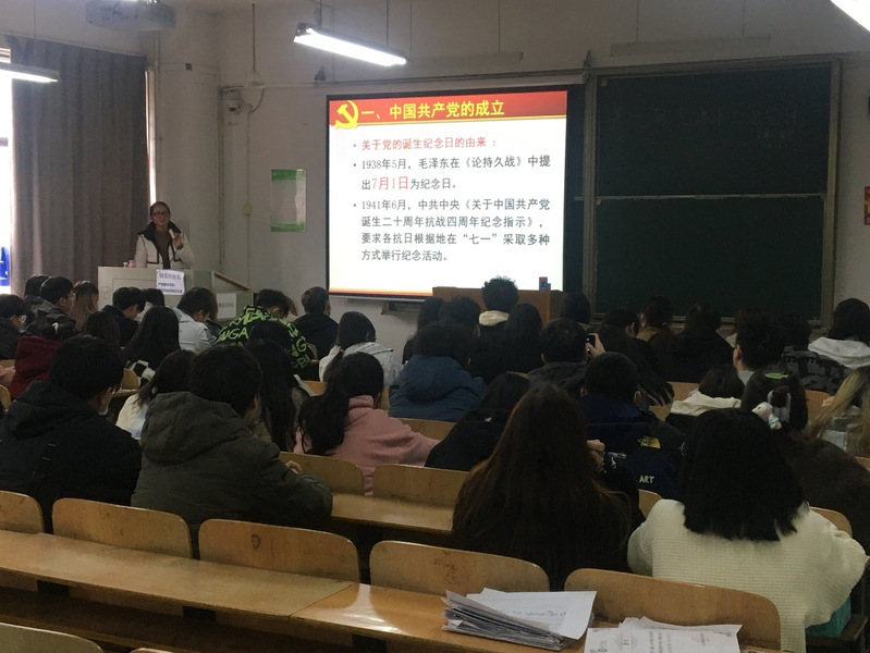 第五次党课是由邵弯老师讲授,她为同学们带来的主题是《中国共产党的诞生》。邵弯老师通过回顾历史,和展望未来两个线索展开。详尽地介绍了中国共产党成立的历史背景。她强调中国共产党创建于1921年7月23日,自诞生以来便确立了新民主主义革命的正确道路,让灾难深重的中国人民看到了新的希望、有了新的依靠。中国共产党以马克思列宁主义、毛泽东思想、邓小平理论、“三个代表”重要思想、科学发展观、习近平新时代中国特色社会主义思想作为自己的行动指南。最后她向同学们提问:“为什么要入党?”同学们激情高涨,踊跃回答该问题,说出了自己内心的真实想法。邵弯老师在听取同学们的回答中,适时点评加以鼓励,并表示同学们要有信仰、有追求,对党忠诚,为民奉献,才能在入党道路上“其道大光”。
