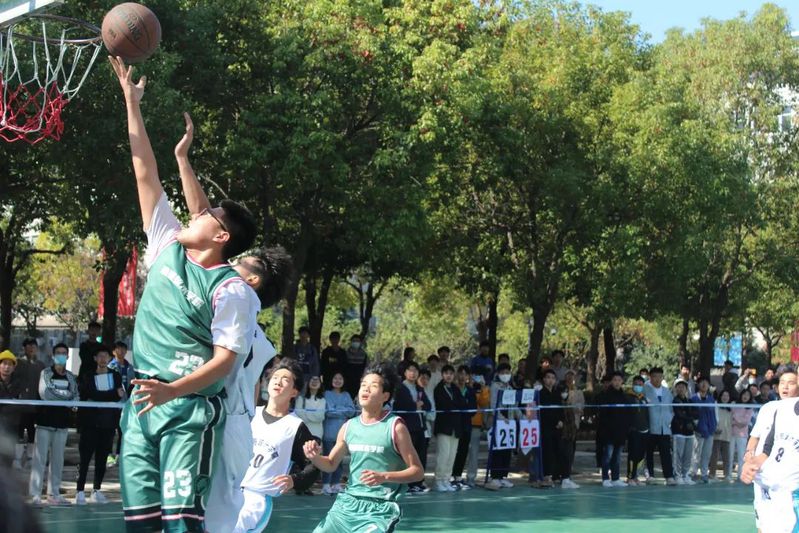 猛烈的攻势,激烈的交锋,赛场上的少年们光芒四射,在加时赛中,我们的球员防守、突破,默契的配合和平稳的心态取得优势,最后的压哨三分,完美的弧线伴随着观众热烈的欢呼,我院夺得季军。