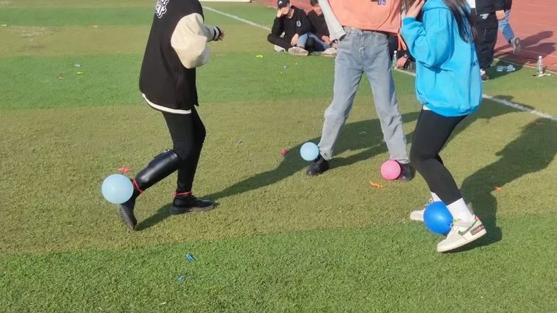 每个人的脚上绑上气球,哨音响后,一方面需去踩爆敌队的气球,同时也需要保持自己的气球不被踩爆。当然你也可以与另一组队伍达成同盟,这考验了队友之间的反应能力和默契能力。(注意气球不要吹太大)