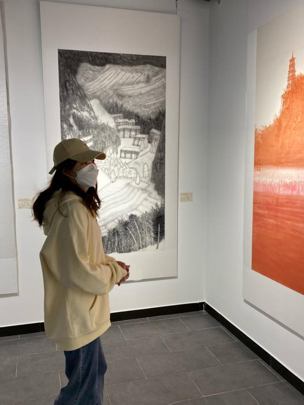 黄奥在美术馆看展