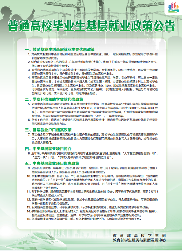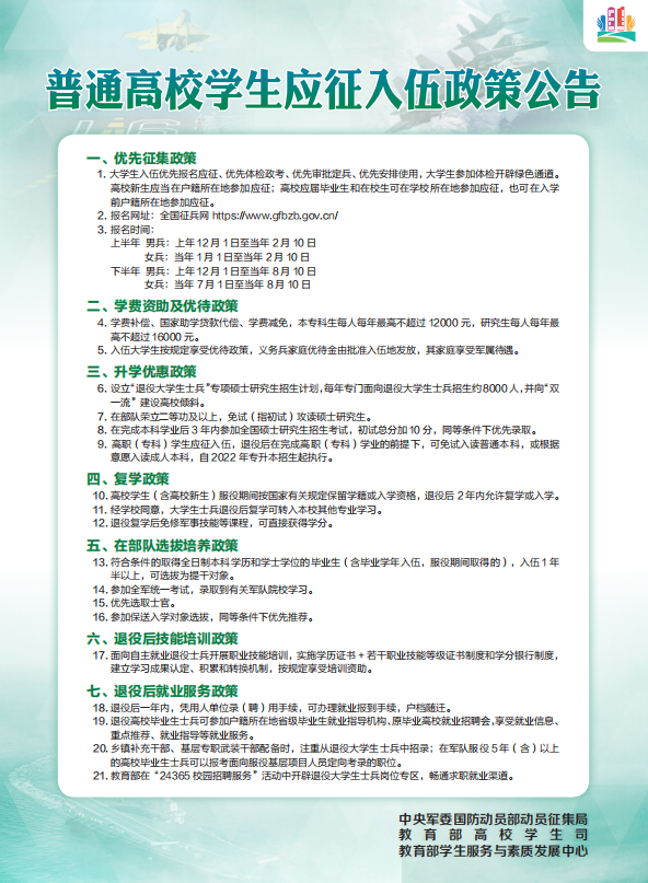 普通高校毕业生就业、创业、入伍政策及就业服务公告