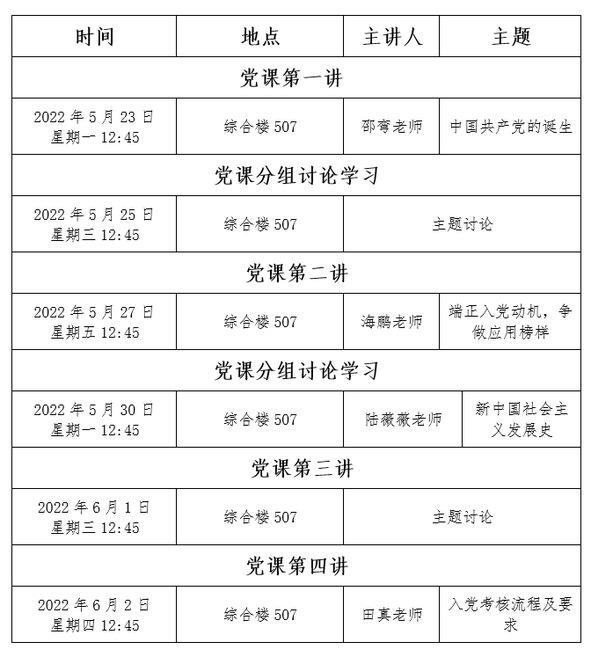 三、党课培训时间安排