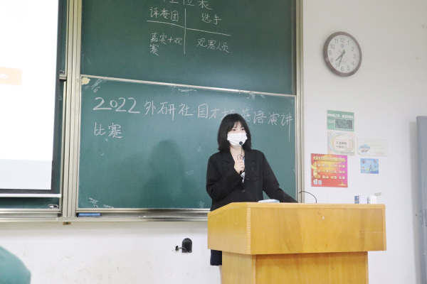 最后,由王丹丹老师和蔡旭老师对本次大赛进行点评及总结,她们充分肯定了本次比赛的意义,也指出了比赛的不足,为以后开展类似活动积累了宝贵的经验。同时,蔡旭老师也号召更多的同学参与到英语演讲比赛中来,激发大家对英语演讲比赛的热情,更好的投入到以后的英语学习中。