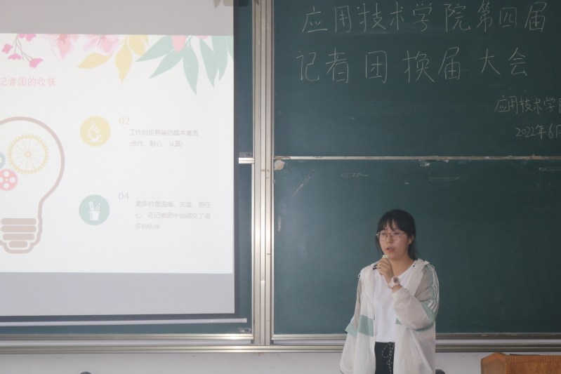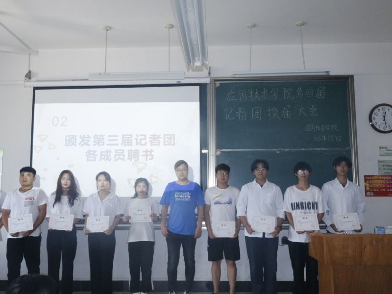 (通讯员:史梦玲)时光荏苒,转眼间记者团迎来了第四届换届大会,大会在2022年6月7日综合楼301顺利举行。本次参会人员:记者团负责老师史梦玲老师和全体记者团成员。本次特邀嘉宾:学院分团委书记梁爽老师和学工办吴粽彬老师。