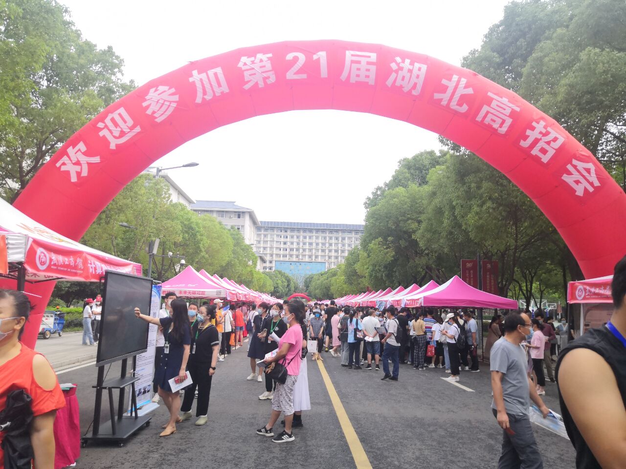 在咨询会现场,学校各学院展位也整齐划一,各类服务区域清晰明了,各项防疫措施准备得当。我院院长金学武、书记海鹏、副院长熊晓亮以及教务办公室郑春丽、向锦媛老师还现场为考生和家长赠送学校最新版招生简章折页、湖北省招生计划单页等,前来咨询的家长和考生在工作人员和志愿者的引导下,有序排队、查验健康码、测量体温、领取参会资料后有序入场。活动现场火爆而有序地进行。