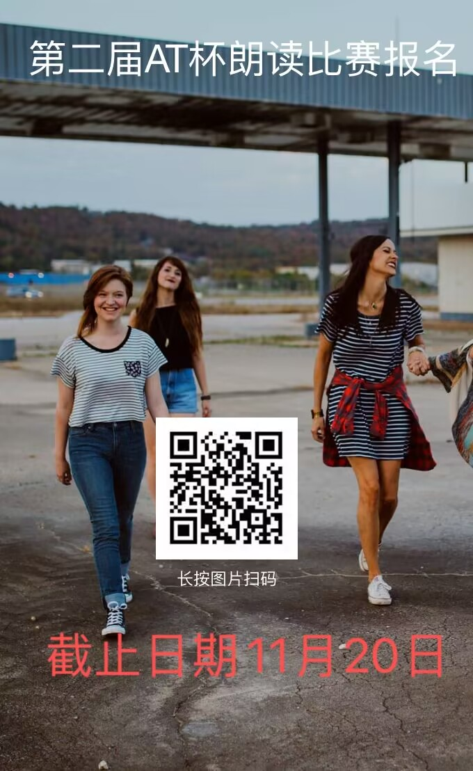 (3)参赛材料及方式:赛事群(下侧扫码进群)将于提前三天(11月25日)把5份参赛材料发出来,给大家时间准备。现场进行盲抽抽到哪一篇就读哪一篇。