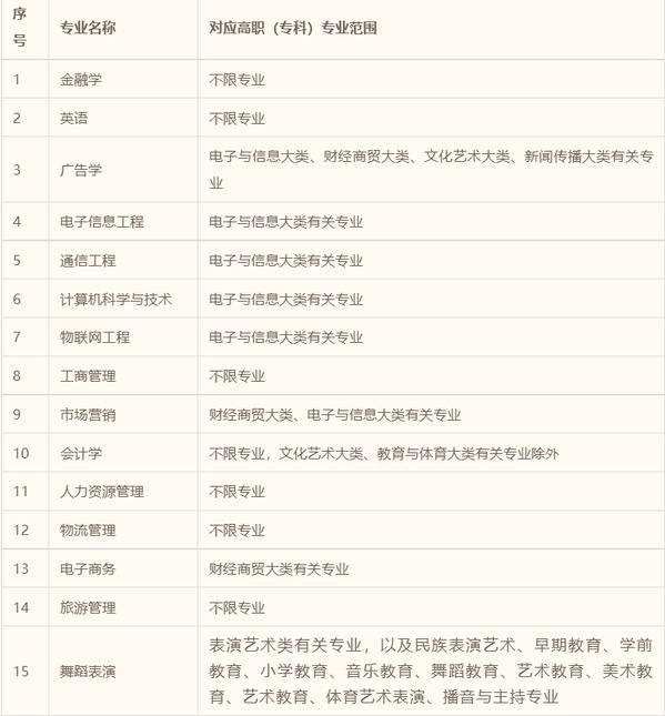 备注:舞蹈表演专业设置音乐舞蹈方向,招收舞蹈和音乐专科基础的学生。