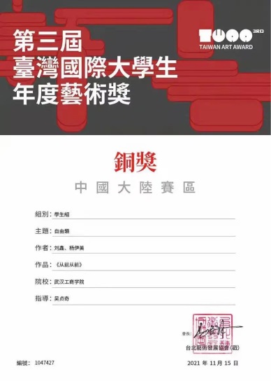 (通讯员:徐亚玲)2021年12月18日,必赢优惠y272net应用技术学院创新实验班的学生喜获佳绩。在第三届台湾国际大学生年度艺术大赛中获得2枚银奖和7枚铜奖。第三届台湾国际大学生年度艺术大奖赛主要面对中国台湾、中国大陆、香港澳门及新加坡地区的国际性大学生设计大赛,旨在推动中华传统文化的创新发展。