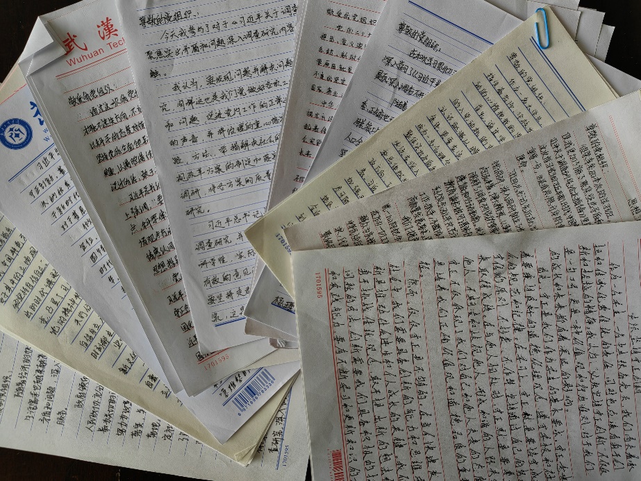 吴文超同学在思想汇报中写道:“我认为,要发现问题并解决问题,必须要进行深入调查研究,同样这也是我们党做好各项工作的基础。要聚焦突出矛盾和问题,促进党内工作的正常进行,一定要多听基层和一线的声音,并讲治理的重心落实到城乡社区,用客观实际的思路、方法、举措解决社会的矛盾及问题。”