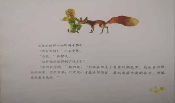 人类已经忘记这条真理,但你千万不要忘记,你要永远为你驯化的东西负责。因为驯化,让我们成为了彼此的需要,你对我来说是独一无的,我对你来说也是独一无二的;因为付出了爱,让你我都变得如此的重要,有些东西只有用心才能看得清楚,用眼睛是看不见的