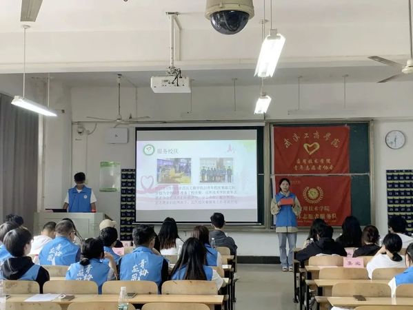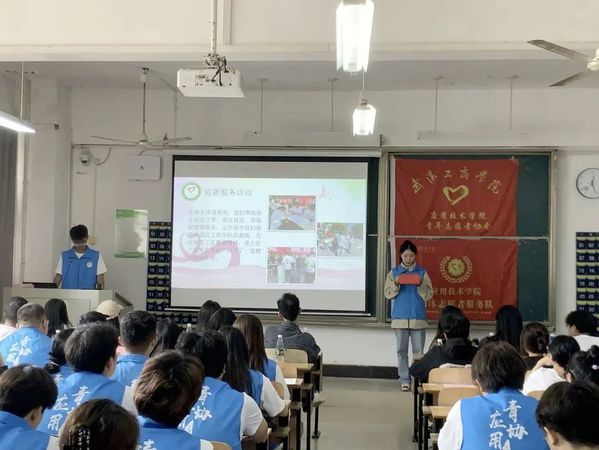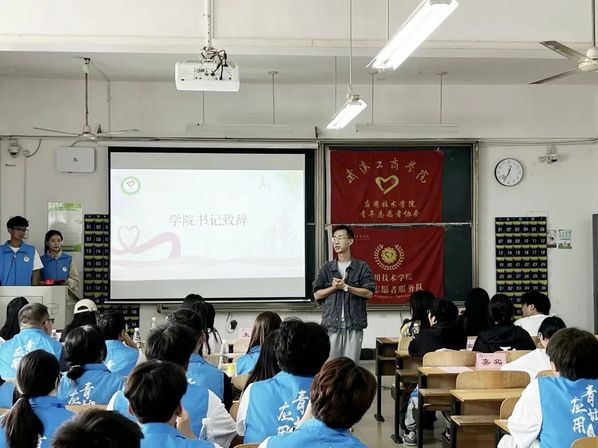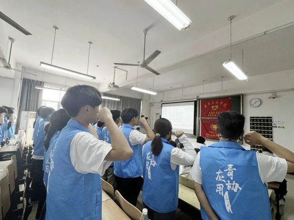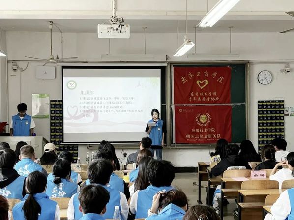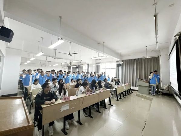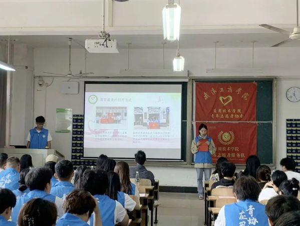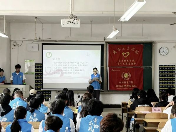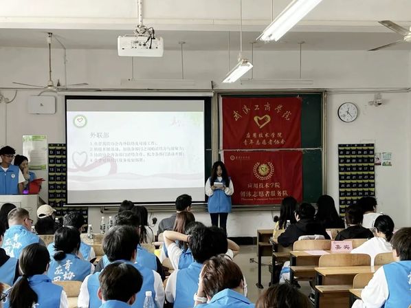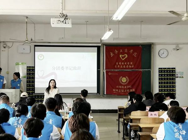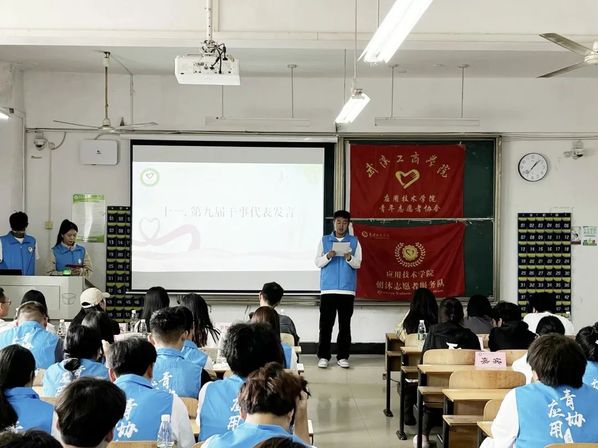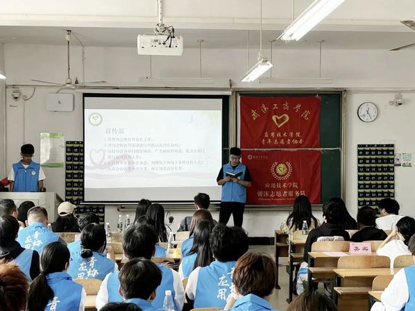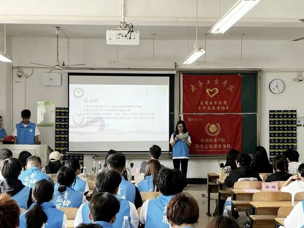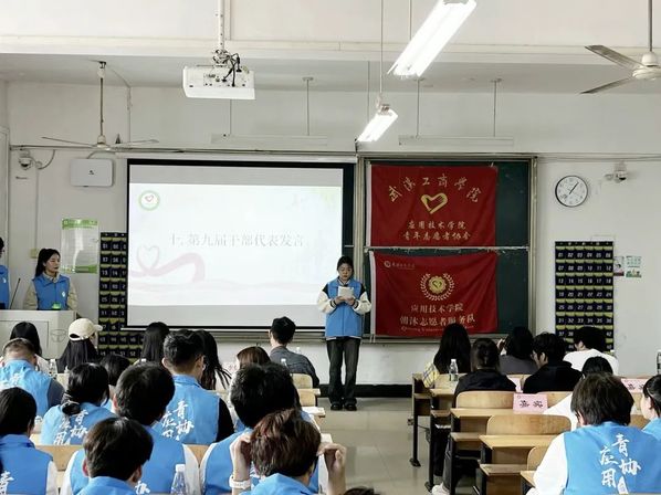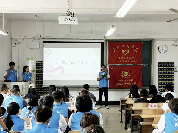 应用技术学院第九届青年志愿者协会成立暨动员大会于2023年10月13日中午12点20分在综合楼204圆满举行。参加本次成立大会的有应用技术学院党支部书记朱威老师、分团委书记李梦洁老师、辅导员梁爽老师、分团委副书记黄诗颖、校青协代表、各分院青协代表以及第九届应用青协全体成员。