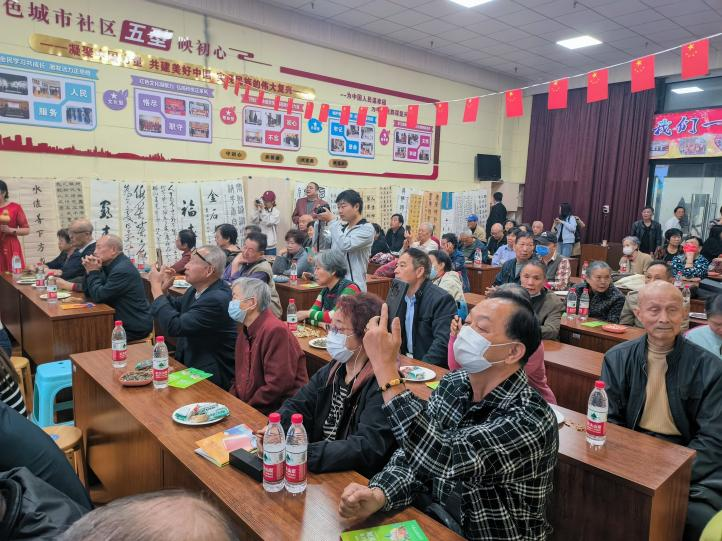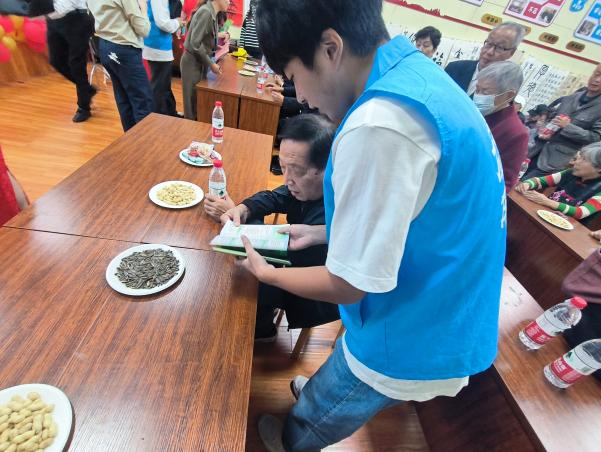 早上9点30分左右,志愿者们早早打扫好会场后便欢迎老人的到来,协助老人入场就座后,志愿者们参观了“三石书画室“带来的书法展,感受老有所乐的生活情趣;随后,志愿者们向老人们宣发防诈反诈手册,提高老人防范意识;然后,金色城市社区副书记刘盈同志致辞。她关切问候老年朋友们,为他们送上真挚的节日祝福,并对我们协会志愿者的到来表示了衷心的感谢;在活动主持人的宣布后,青年志愿者协会志愿者们为老人献上《最炫民族风》广场舞版舞蹈,在激昂的舞曲中,一群老年人与青年人载歌载舞,既跳出了暮年不平凡的热烈,也跳出了青年乐观向上的意志;最后,志愿者们共同打扫卫生现场卫生,为老人创造了良好的生活氛围。
