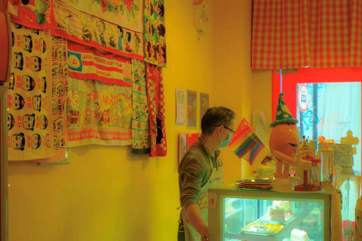 在拍摄过程中,六个人分成两组各自在江汉路寻找自己喜欢的人、物、景,并用相机留存下来。整个拍摄时段里,大家惊叹于江汉路老建筑的精美与留存之久,也为梧桐落叶而驻足。动物在这座城市中,和人类一样也是主人,城市的繁荣景象少不了小动物们。街角的小店里,暖色的壁纸贴在墙上,神态各异的卡通形象立在铺子里,等待着人们来将他们叫醒。暖黄色的灯光笼罩着整个店铺,老爷爷的身影忙碌,显出一份格外的温馨。