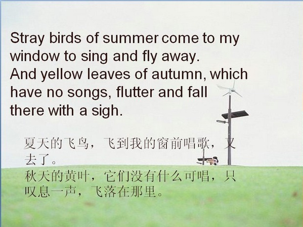 泰戈尔曾言:世界上的一队小小的漂泊者呀,请留下你们的足印在我的文字里。而我,确实为他的文字而震撼。