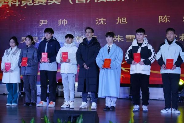 图为金学武院长为学科竞赛类(国家级)先进团体及个人颁奖