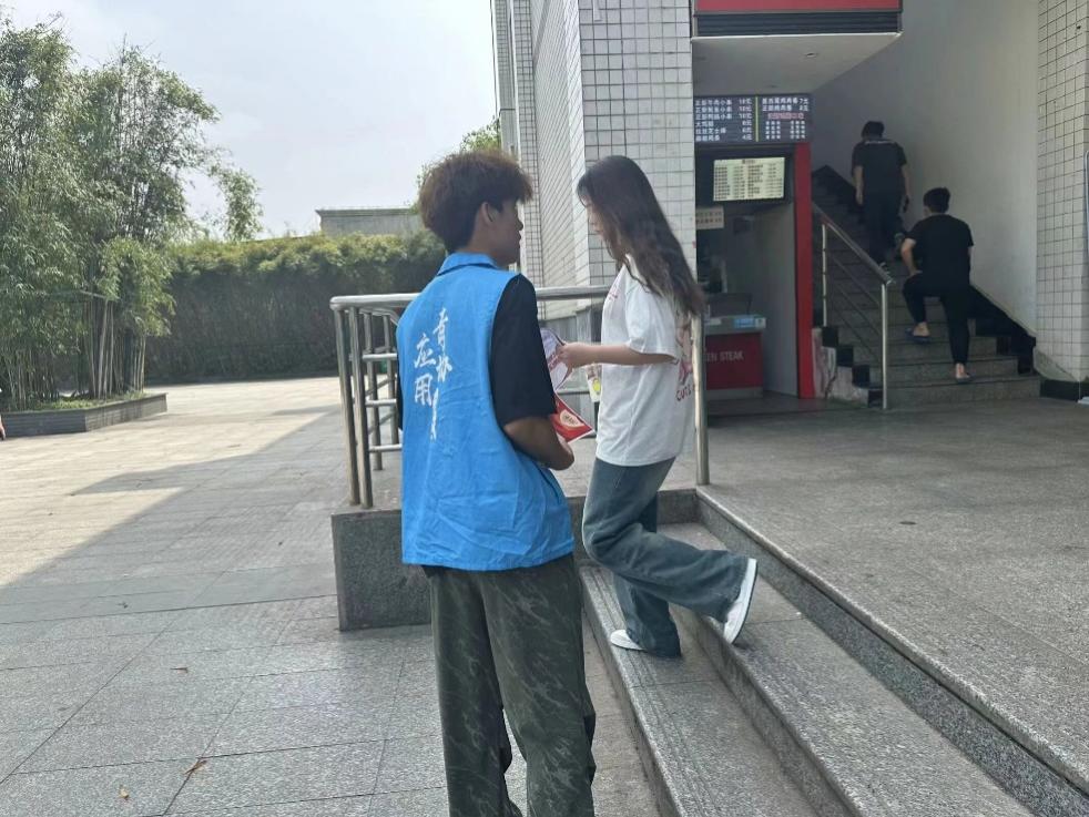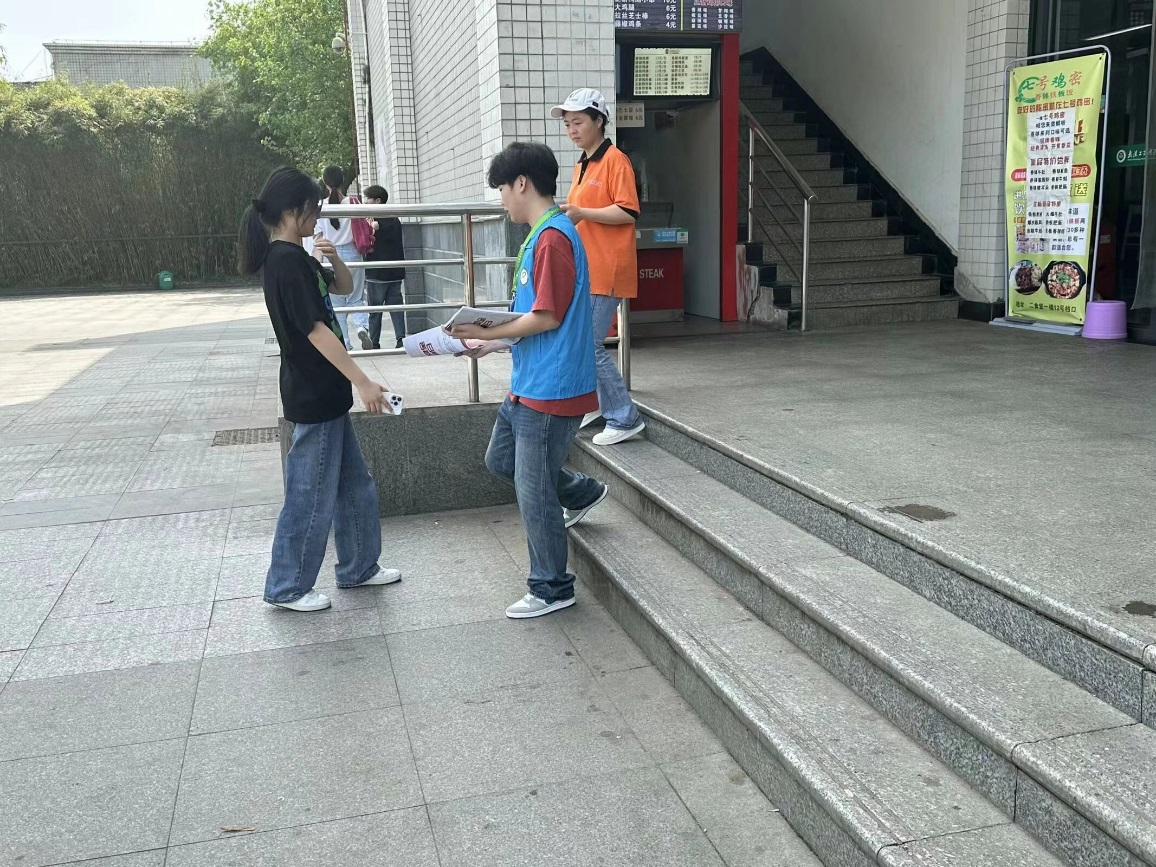 协会成员们通过前期收集国家安全相关资料,结合学院自身实际情况,制作了国家安全宣传册,通过在校园内人员流动较大的地方发放国家安全宣传册的方式向同学们传递国家安全知识。同时,成员们也准备了一些简单的国家安全知识的小问题随机采访提问,如果采访同学回答正确将有所奖励。