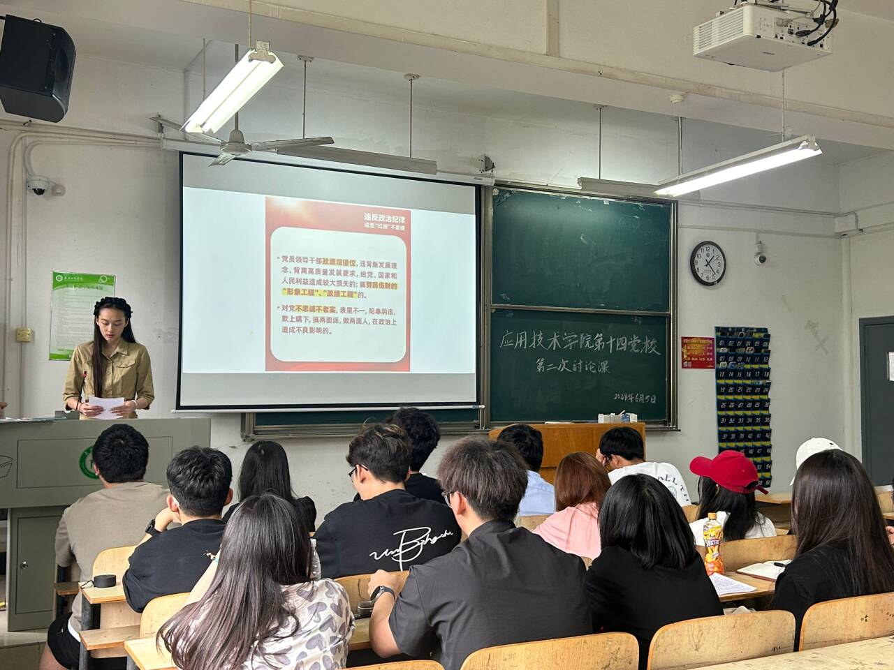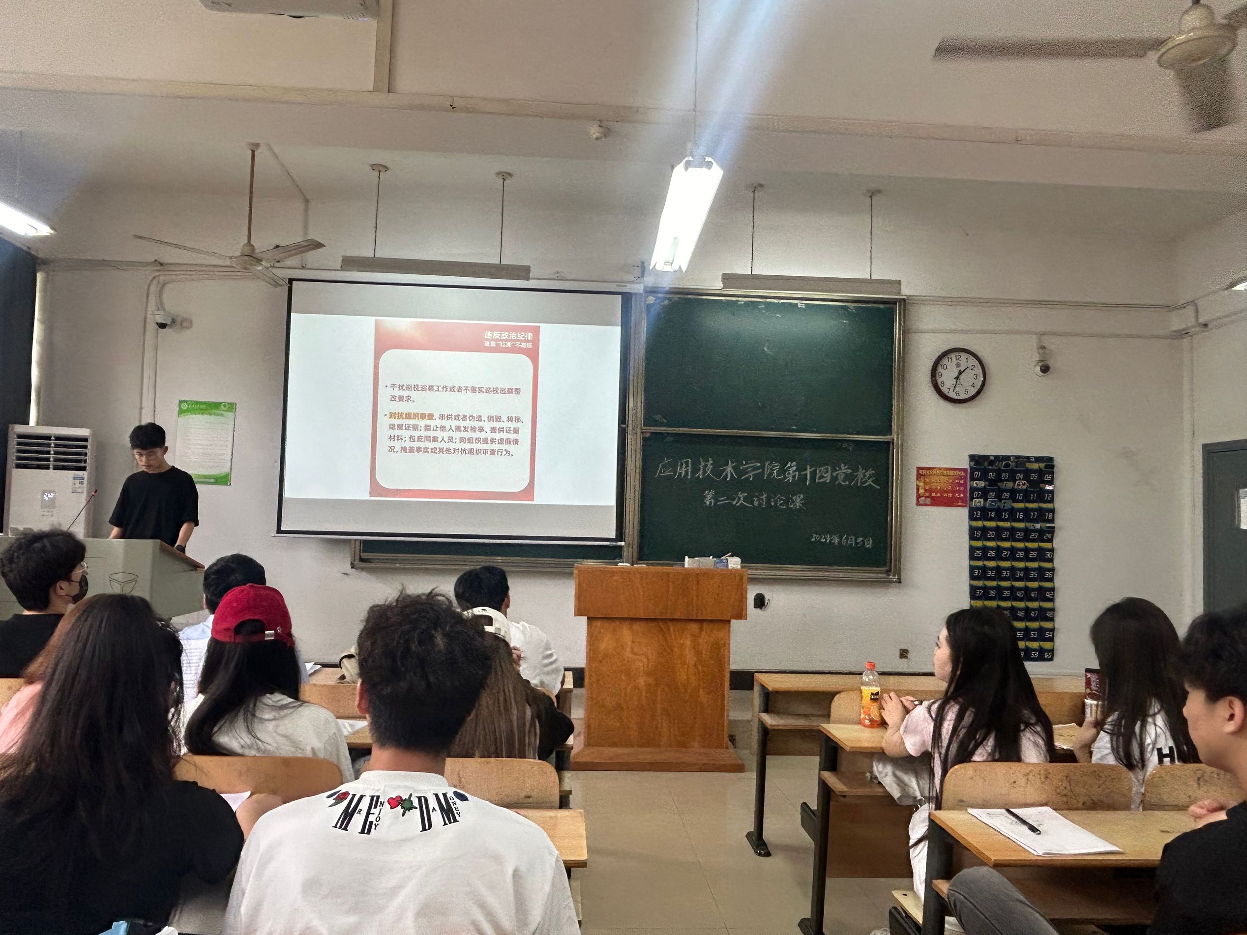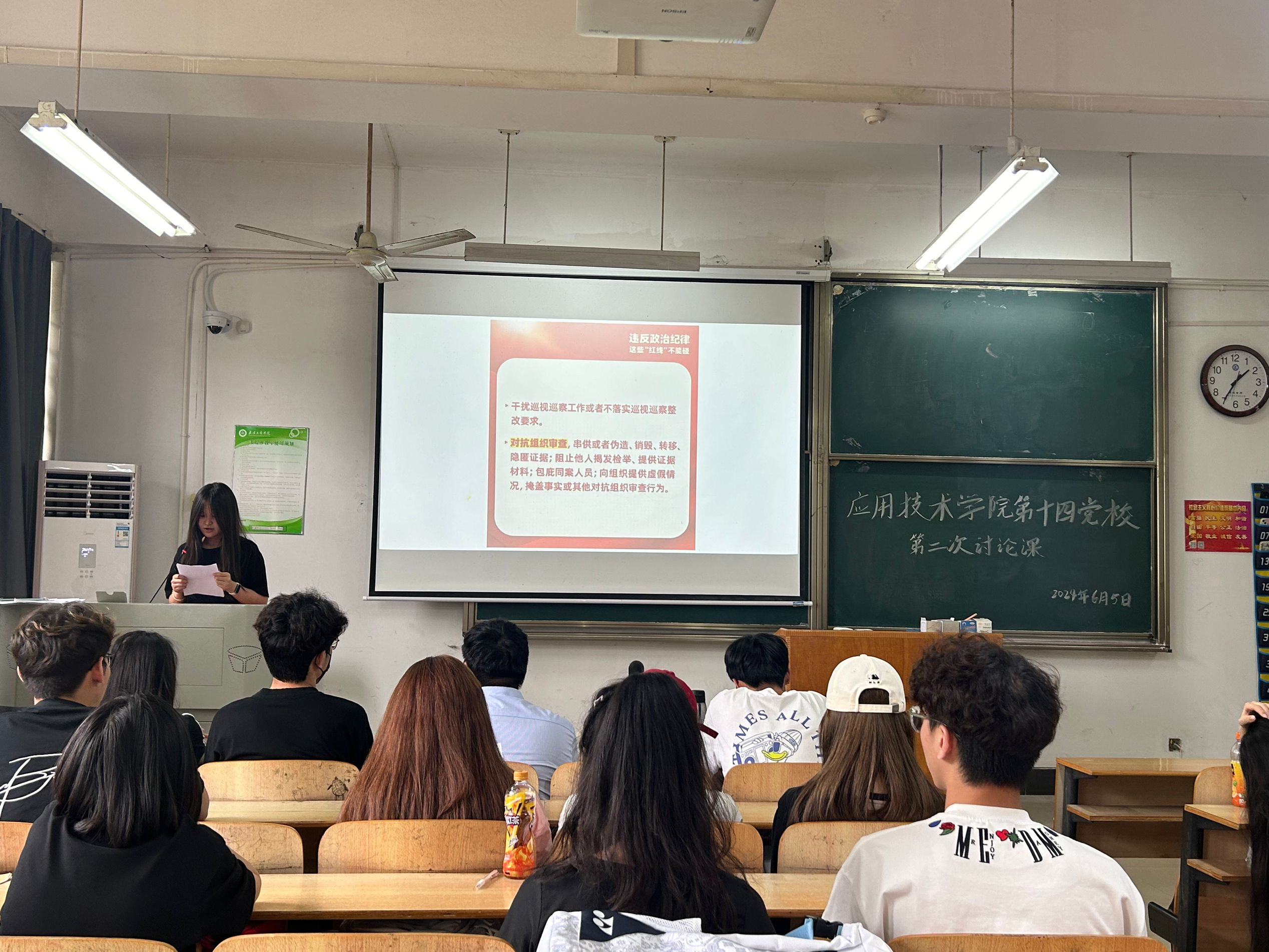 为增强党性修养,促进党风廉政建设,强化纪律观念,筑牢思想防线。武汉工商应用技术学院学生党支部在2024年6月5日中午在综合楼201开展了“党纪学习教育”主题汇报活动。