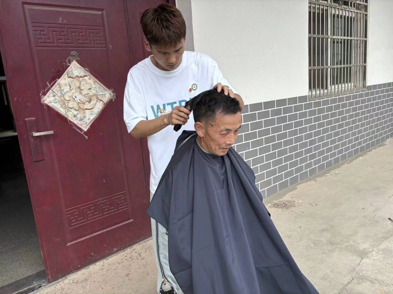 在村里的广场上,志愿者们搭起了简易的理发摊和摄影位置。老人们纷纷前来,有的想换个新发型迎接新生活,有的则想拍一张全家福留作纪念。志愿者们拿起剪刀和梳子,小心翼翼地为他们修剪头发;举起相机,捕捉他们幸福的笑容。当看到老人们满意的笑容和手中珍贵的全家福照片时,我们感到无比的幸福和满足。这些瞬间,将成为他们心中永恒的记忆。