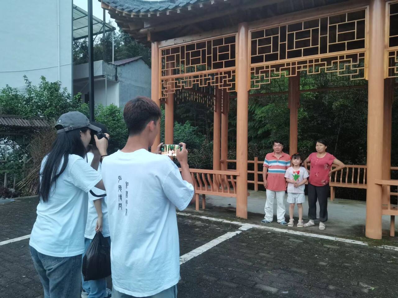 在村里的广场上,志愿者们搭起了简易的理发摊和摄影位置。老人们纷纷前来,有的想换个新发型迎接新生活,有的则想拍一张全家福留作纪念。志愿者们拿起剪刀和梳子,小心翼翼地为他们修剪头发;举起相机,捕捉他们幸福的笑容。当看到老人们满意的笑容和手中珍贵的全家福照片时,我们感到无比的幸福和满足。这些瞬间,将成为他们心中永恒的记忆。