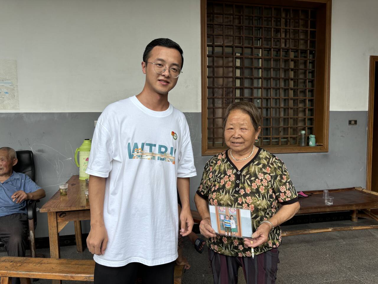 图为志愿者们为老人送去洗好的全家福照片
