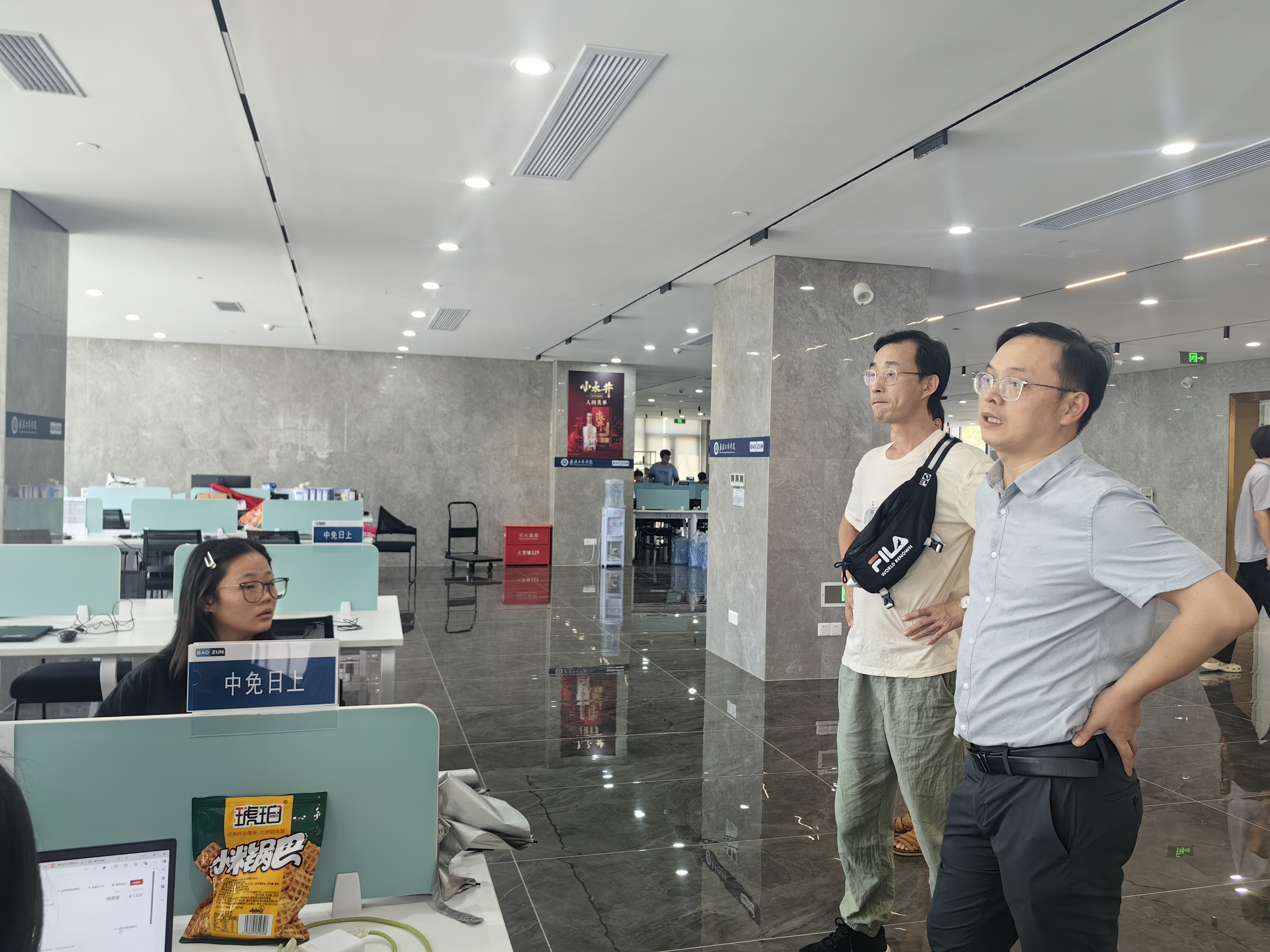 随着应用技术学院院长金学武和党总支书记朱威的引领,2022级辅导员田真,柳燕,李梦洁,李娟走进了实习生专属的工作区域。这里,每一寸空间都透露着精心设计的考量——开放式的办公区鼓励着交流与合作,个性化的工作站则让每个实习生都能找到归属感。“我们致力于为实习生提供最接近真实职场的环境,让他们在这里不仅能够学到专业技能,更能提前适应职场生态。”企业负责导师王媛介绍道,她的言语中充满了对实习生成长的关怀与期待。