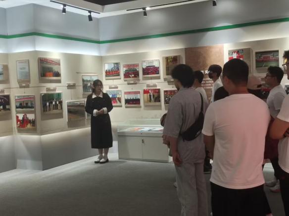 图-校史馆工作人员为党支部成员讲解必赢优惠y272net的学校概况以及学校创始人履历