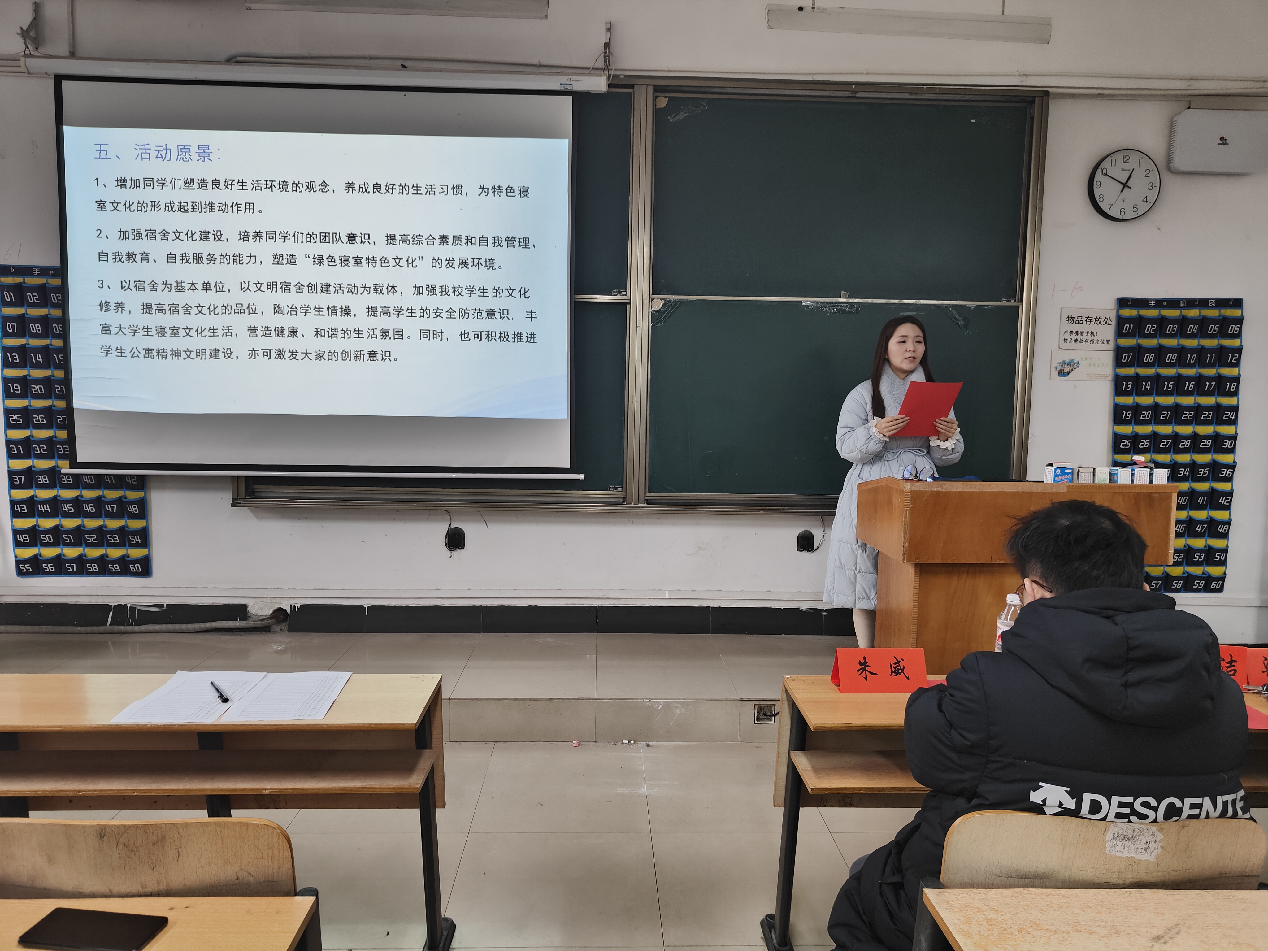 党总支书记朱威老师随后发表讲话,强调文明寝室建设是校园文化建设的重要部分,鼓励同学们将活动中的热情延续到日常学习生活中。