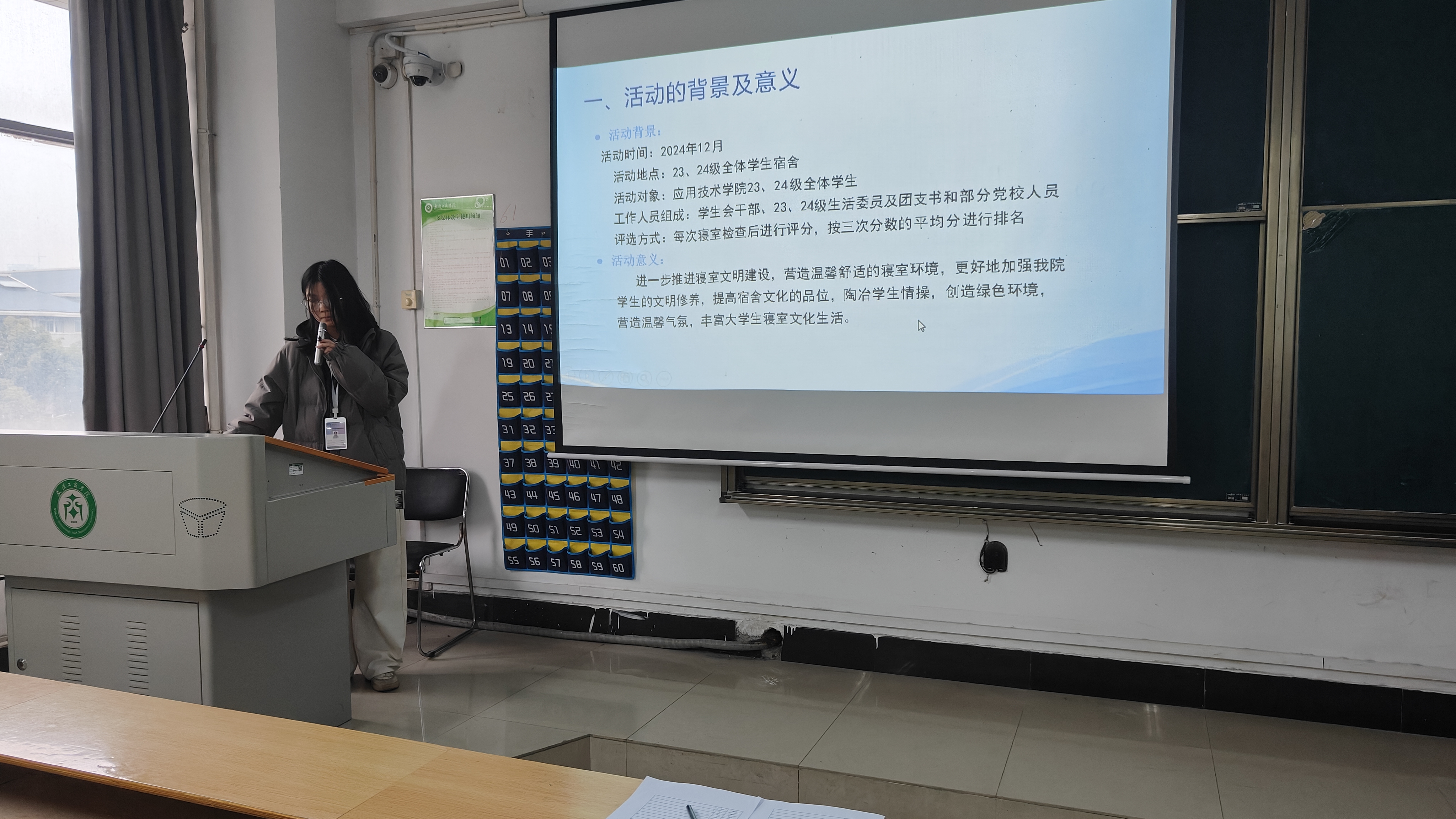 紧接着,李梦洁老师进行总结发言,肯定了活动的成效,对同学们在活动中的积极表现予以表扬,也对未来的寝室建设提出新期望。