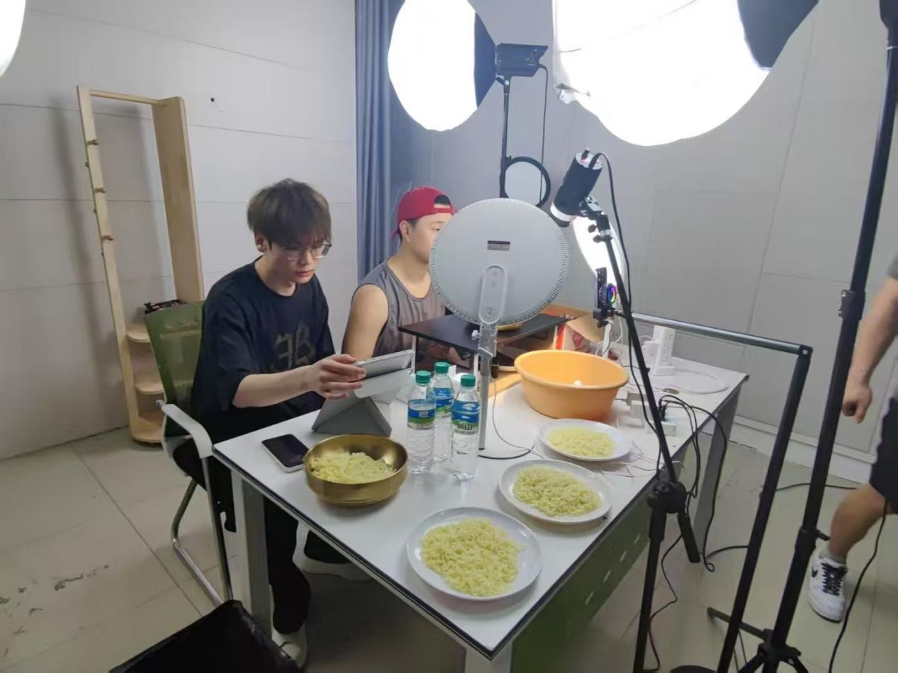 你以为吃播只是单纯地“吃”吗?那可大错特错啦!在学校的吃播实训中,同学们将开启一段全方位的学习之旅。从前期对美食的调研与选择,到直播场景的精心布置;从镜头前自信流畅的表达,到幕后数据的分析与总结,每一个环节都是一门学问。在这里,你不仅能满足自己对美食的热爱,还能系统学习直播技巧、市场营销、沟通交流等多方面知识,真正做到理论与实践完美结合。