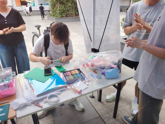 活动亮点纷呈,手工创作区域热闹非凡。DIY发夹制作中,参与者利用奶油胶、贴片等材料,精心搭配色彩、雕琢细节,将日常饰品打造成承载情绪的特殊载体。心理主题剪纸区域,“情绪树”“心灵之花”等模板供参与者选用,作品悬挂于“心灵树”装置,汇聚成一场富有创意的集体艺术展。黏土画减压场景创作中,参与者利用彩色黏土捏塑出主题场景,部分作品融入动态元素,增强趣味性与互动性。超软油画棒涂鸦区,参与者绘制抽象图案或书写激励短语,作品张贴于“情绪彩虹墙”,成为活动现场的视觉焦点。