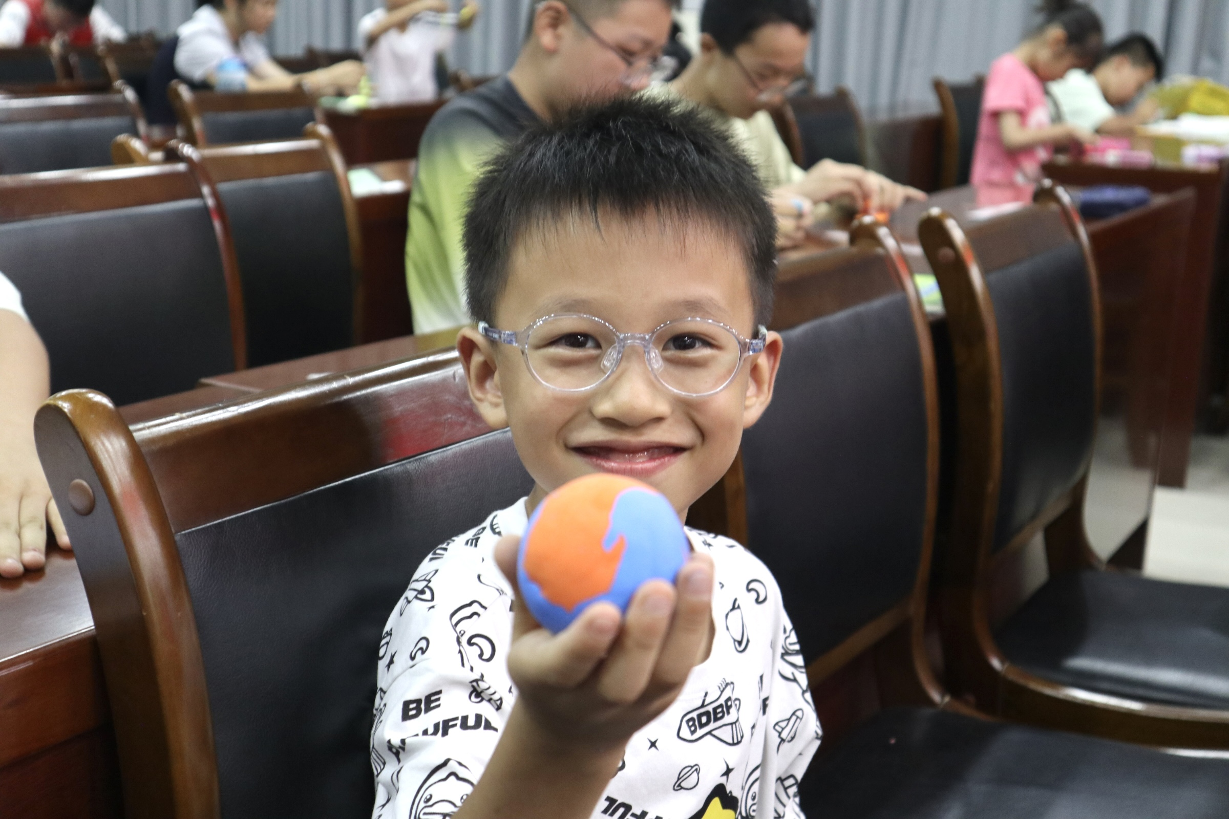 稍作休息后,由志愿者王力戈主讲的播音主持课精彩登场,他不仅细致传授孩子们发音技巧,还指导大家掌握国旗下演讲的要领。孩子们瞪着好奇的眼睛认真聆听,举手回答问题时,小手高高举起,格外踊跃。志愿者陈梦涵组织的美术课上,彩泥在孩子们手中变成了小蛋糕、小球、小蘑菇...一个个惟妙惟肖,活动室里满是成就感的欢呼。