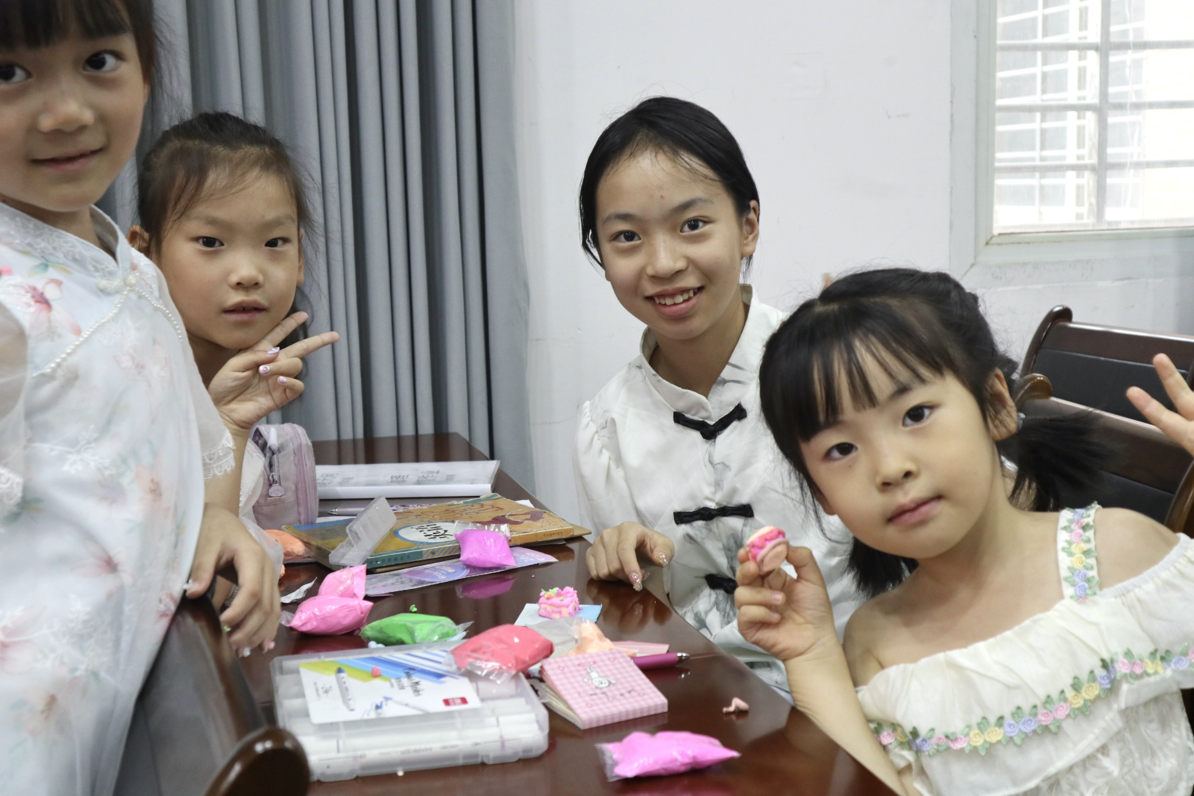 稍作休息后,由志愿者王力戈主讲的播音主持课精彩登场,他不仅细致传授孩子们发音技巧,还指导大家掌握国旗下演讲的要领。孩子们瞪着好奇的眼睛认真聆听,举手回答问题时,小手高高举起,格外踊跃。志愿者陈梦涵组织的美术课上,彩泥在孩子们手中变成了小蛋糕、小球、小蘑菇...一个个惟妙惟肖,活动室里满是成就感的欢呼。