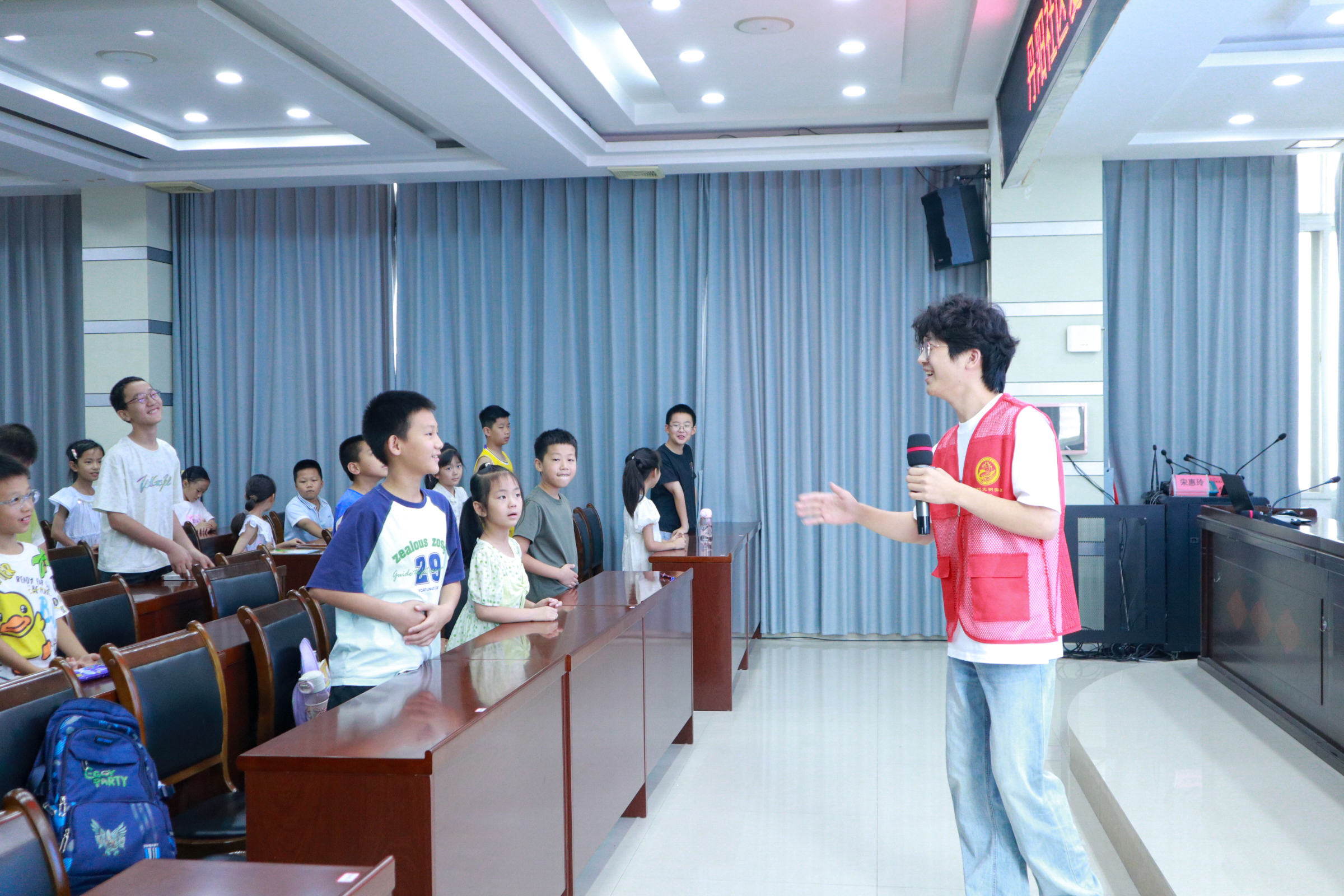 7月9日的课程同样精彩纷呈。上午,由志愿者王力戈组织的读书分享会上,孩子们捧着心爱的书籍勇敢走上台:有的讲述《骆驼祥子》里的故事,有的畅谈《三国演义》中的英雄,还有的分享《小英雄雨来》的勇敢事迹,现场掌声不断。志愿者赵镆涵的音乐课上,他先教给大家唱歌最基本的发音方式,随后带着小朋友们学唱《听妈妈的话》,稚嫩的歌声里满是温情。
