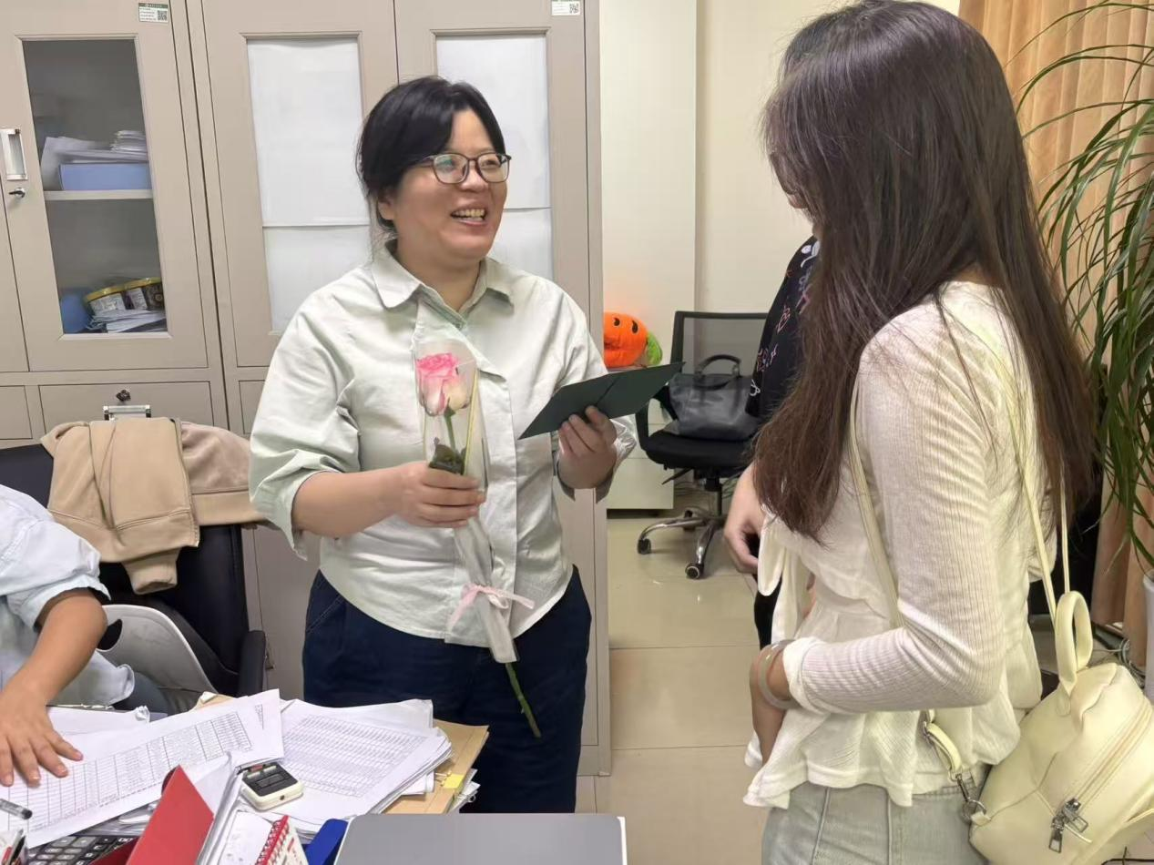 清晨的第一缕阳光洒进校园,学生会的同学们已经忙碌起来。他们手捧鲜花和贺卡,走遍学院的每一个办公室,为辛勤工作的老师们送上最真挚的祝福。