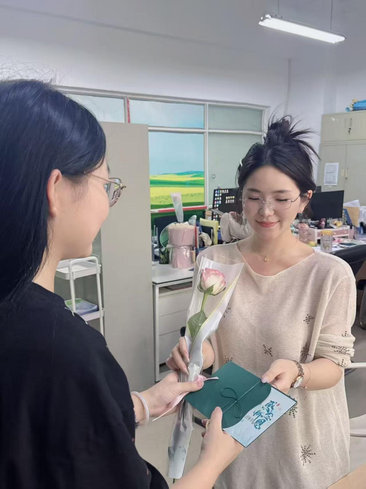 粉玫瑰象征着感激与欣赏,贺卡承载着敬意与祝福。这份简单却用心的礼物,表达了应用技术学院全体同学对老师们深深的感恩之情:感谢老师们用知识滋养我们成长,用智慧引领我们前行,用付出陪伴我们度过大学时光。