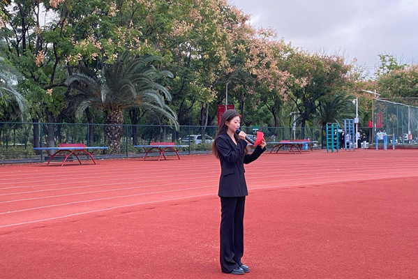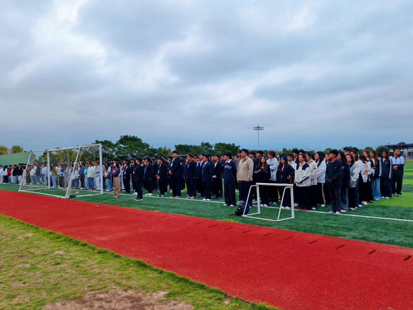 升旗仪式上,学生代表也分享了粮食安全的内容,表示要守护国家粮食安全,保护基本耕地红线,保证人民对粮食的基本需求。民以食为天,食以粮为源,粮以地为本。耕地是粮食生产的命根子,一条耕地红线,关乎亿万人口粮安全,维系着中华民族永续发展的根本大计。操场上的同学认真聆听。