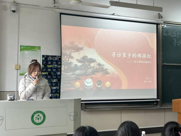 张子仪同学以《探寻家乡的那抹红——信阳红色印记与风物》为主题,将把我们的目光引向信阳。她介绍了新县首府博物馆里近万件文物背后的故事,讲述红二十五军从何家冲出发长征的“北上先锋” 传奇;还将视角延伸到当地文化,从信阳毛尖的“茶味初心”,到新县板栗从 “红军粮” 到 “致富果” 的转变,让我们在品味家乡风味的同时,感受红色精神对乡村振兴、民生发展的深远影响。