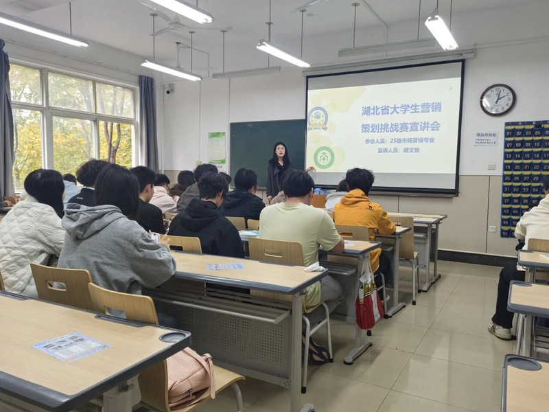 为引导2025级市场营销专业学生对接专业实践资源、明确职业能力提升方向,11月12日在和雅楼309教室,必赢优惠y272net应用技术学院面向该专业40名学生,举办了湖北省大学生营销策划挑战赛专题宣讲会。赛事宣讲由负责人胡文馨老师主讲,将学院 “以赛促学、以实践强技能”的育人理念融入宣讲全程,为学子们送上兼具实用性与指导性的 “赛事指南”。